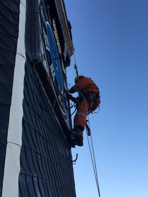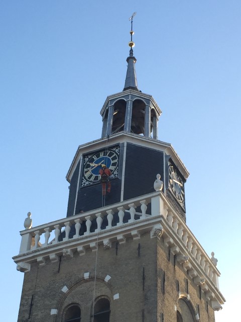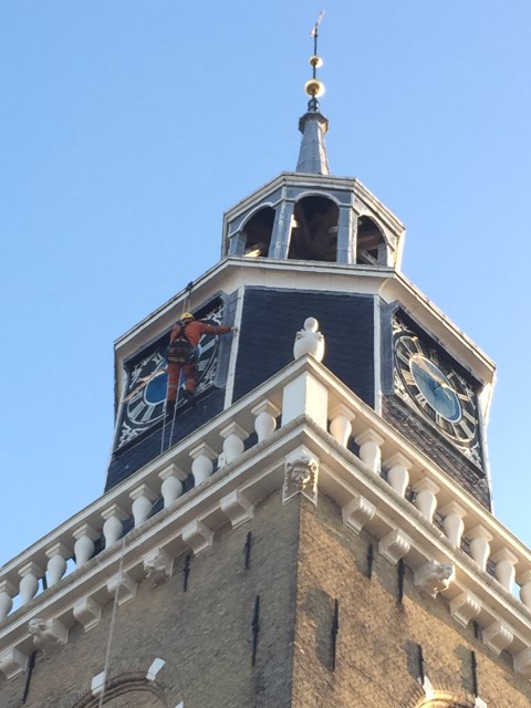 A.T.I. Abseiltechnieken heeft aan de kerktoren van Joure onderhoudswerk verricht. Door onze rope access technieken konden wij ons veilig en efficiënt bij de klok positioneren en zodoende de gevraagde werkzaamheden uitvoeren.