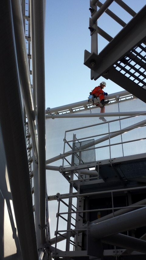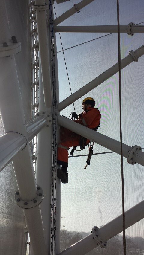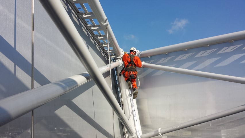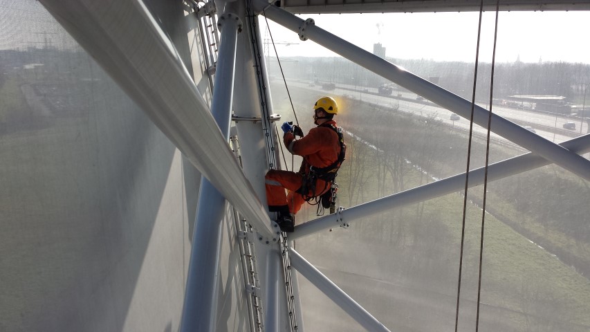 In opdracht van Poly Ned heeft ATI Abseiltechnieken schilderwerk verricht aan een staalconstructie welke door Poly-Ned aan de buitenzijde rondom bespannen is met geveltextiel. De binnenzijde van de staalconstructie is moeilijk bereikbaar was om onderhoudswerkzaamheden te verrichten. Door onze rope access touwtechnieken konden wij ons eenvoudig aan de binnenzijde positioneren en zodoende alsnog het nodige onderhoudswerk voor de opdrachtgever uitvoeren.