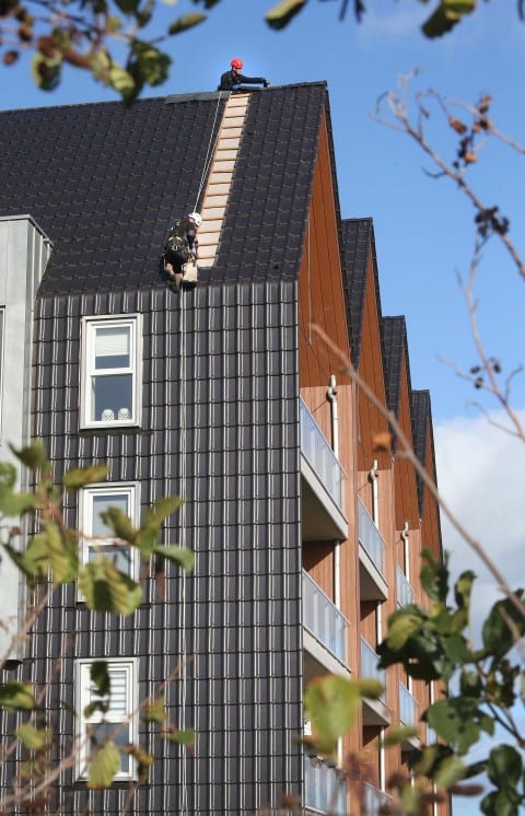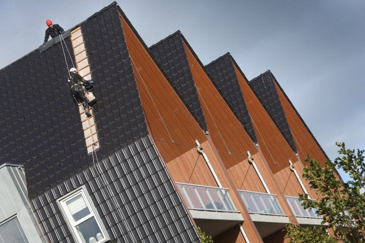 In opdracht van Zaanderwijk heeft A.T.I. Abseiltechnieken dakpannen van een wooncomplex opnieuw vastgezet. Tijdens harde windstoten gebeurde het regelmatig dat de dakpannen van het wooncomplex naar beneden vielen. Hiervoor wilde men een permanente oplossing door alle dakpannen op de 14 daken vast te zetten. Echter wilde men hiervoor wel een efficiënte maar ook veilige werkwijze voor inzetten. Doordat het wooncomplex deels aan het water is gelegen was het inzetten van een kraan of steigers niet het meest ideale. Ook voor de bewoners zou dit een hoop overlast kunnen zorgen. Door het inzetten van onze abseiltechnieken is dit tot een minimum beperkt. Onze rope access monteurs konden middels onze valbeveiliging eenvoudig op het dak positioneren en zodoende alle dakpannen op de 14 daken opnieuw vastzetten. Een mooi voorbeeld van de voordelen van onze abseiltechnieken.