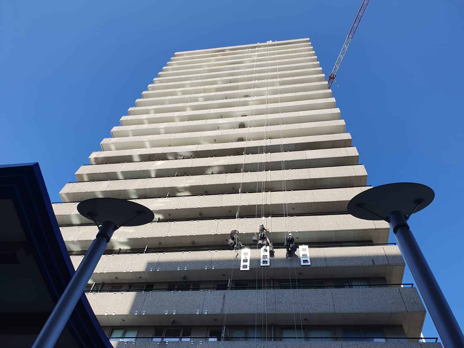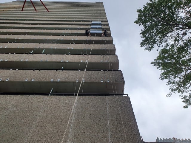Gevelrenovatie Torenhove Delft door Abseiltechnieken