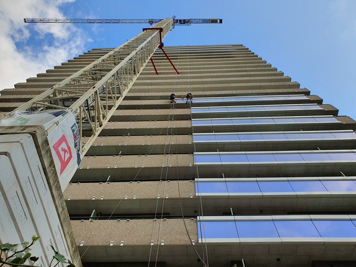 Onze industriële abseiltechnieken, ook wel rope access genoemd. Zijn ontwikkeld voor onderhoudswerkzaamheden op moeilijk bereikbare locaties. Zowel in industriële als stedelijke omgevingen zijn onze abseiltechnieken uitstekend toepasbaar. Voor het uitvoeren van onderhoudswerk op hoogte, boven water of in beperkte ruimtes bieden wij een veilige en efficiënte oplossing. Conventionele hoogwerkmethoden zoals kraan, steiger of hoogwerker, zorgen vaak ook voor overlast in de omgeving of lopende bedrijfsprocessen. Door onze veilige en efficiënte werkmethode zorgen wij ervoor dat alle onderhoudswerkzaamheden veilig en vakkundig worden uitgevoerd terwijl de omgeving en bedrijfsprocessen minimaal worden belast.