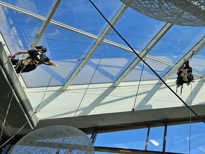 Atrium reinigen op hoogte Amsterdam dmv rope access