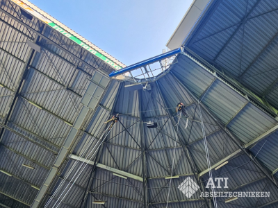 In opdracht van Van Wijnen heeft ATI Abseiltechnieken een inspectie van de staalconstructie van het Kooi