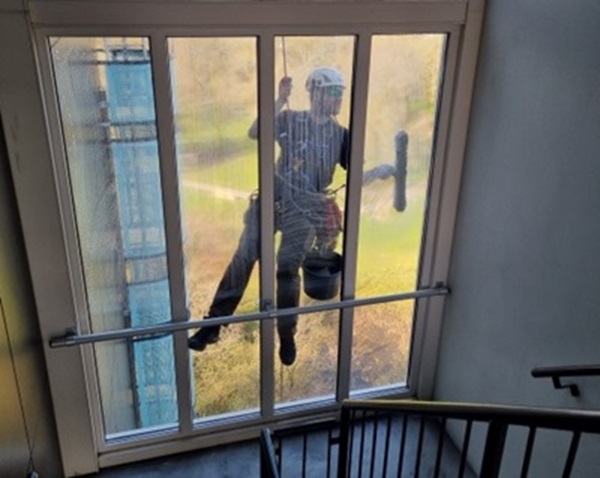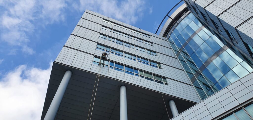 glasbewassing op hoogte of op moeilijk bereikbare locaties zoals boven water is vaak een uitdaging, vooral wanneer traditionele methoden zoals steigers of hoogwerkers niet praktisch of inefficiënt zijn. Het reinigen van ramen op dergelijke locaties wordt echter niet langer een uitdaging dankzij industriële abseiltechnieken, ook wel rope access genoemd.