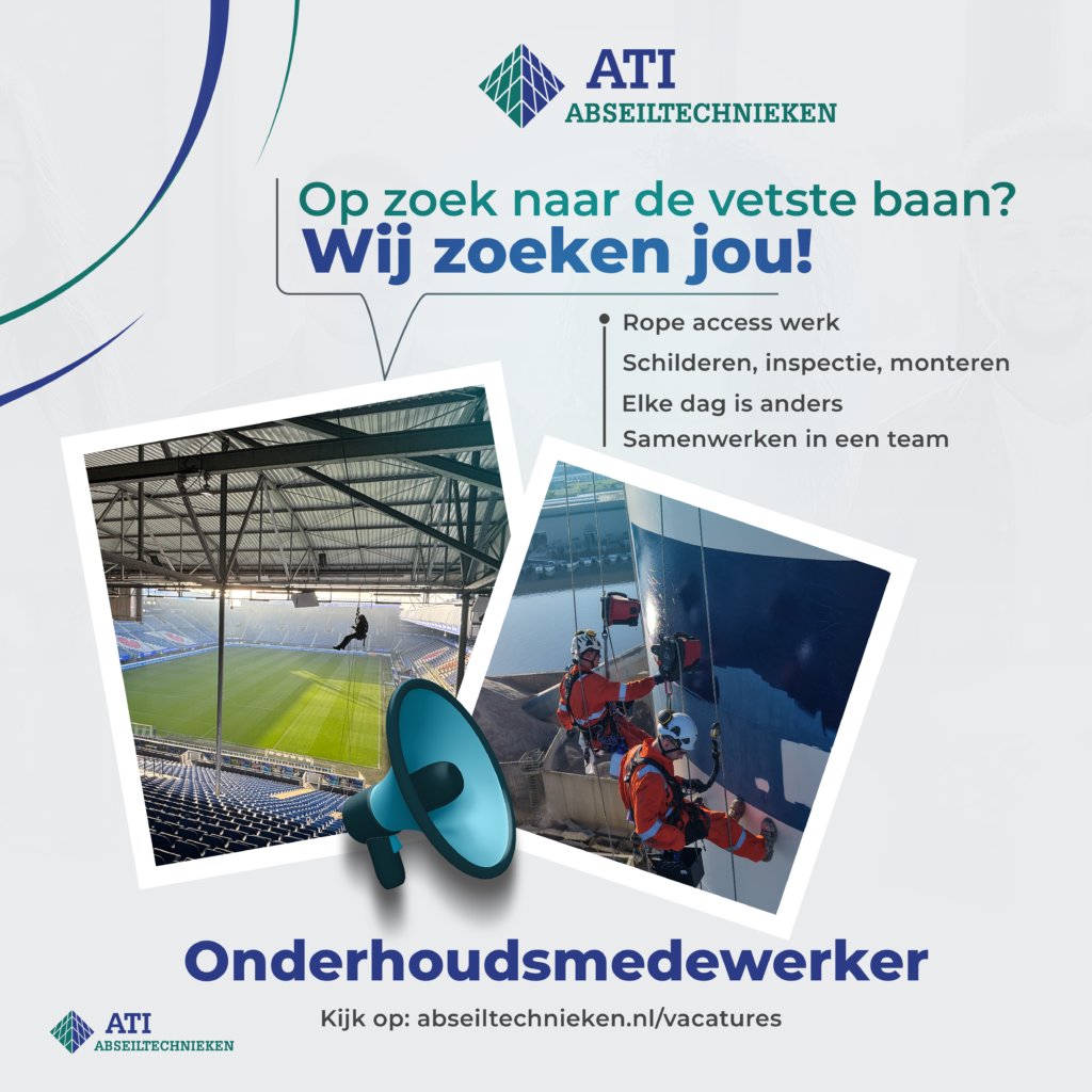 Ben jij technisch, fysiek fit en werk je graag op unieke locaties? Als Allround Onderhoudsmedewerker / Rope Access Technician werk je op hoogte en op lastig bereikbare plekken met industriële klimtechnieken. Afwisselende projecten, goed salaris, opleidingen (IRATA & VCA) en een hecht team wachten op je. Lees hieronder voor de volledige vacature omschrijving.